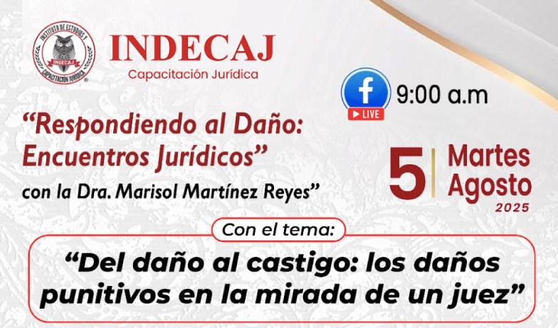 Tema: Del daño al castigo: los daños punitivos en la mirada de un juez Invitado especial: Mtro. Alfonso Olachea Aragón