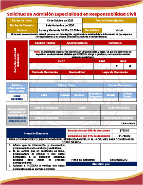 Llena tu solicitud de admisión con tus datos completos